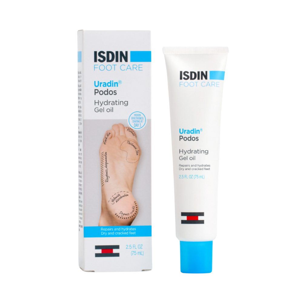 Uradin Podos is a lightweight hydrating gel oil which quickly absorbs into the skin, designed to eliminate hard, rough skin on both the heels and soles of the feet. Dual exfoliating and moisturizing action works to help feet feel softer and look visibly smoother. Within just a few days of use, rough, scaly skin will be visibly reduced.
